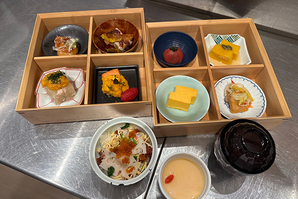 冬音店長がかぼちゃ懐石を列車の中で乗客の皆様に振る舞います。